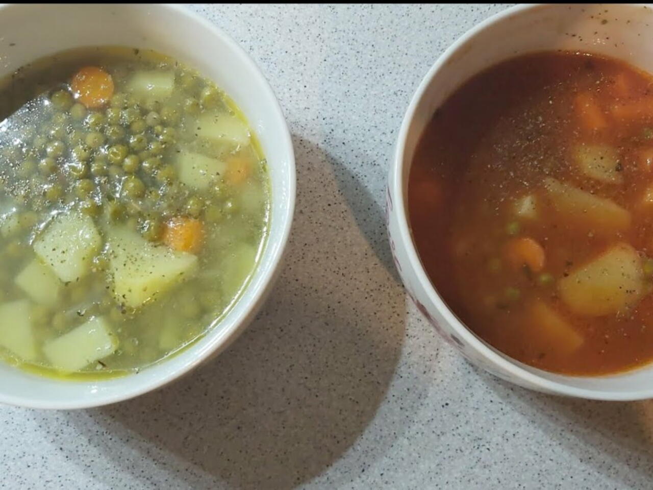 Τσιγαρίζεις το κρεμμύδι με το λάδι,και ρίχνεις μέσα αρακά,καρότα και πατάτες,στην συνέχεια τα ανακατεύεις να ανακατεύτουν όλα μαζί και ρίχνεις 1 κουταλάκι κότας και 1 κουταλάκι λαχανικών και προσθέτουμε και βραστό νερό.Μόλις βράσουν προσθέτεις στο τελος αλάτι&πιπερι..και για το κοκκινιστό προσθέτεις και την σάλτσα..