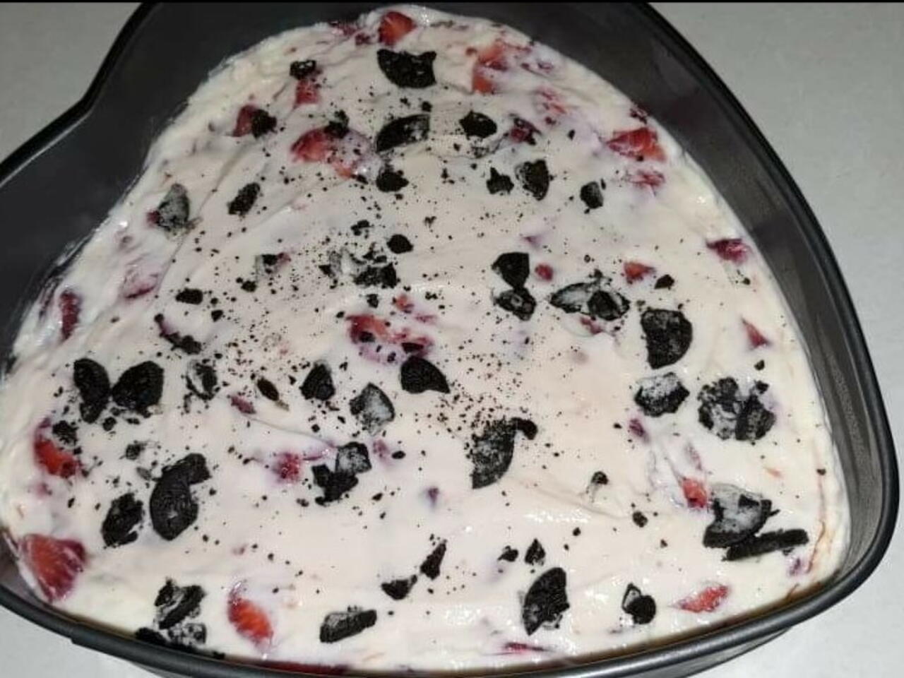 Βουτάμε τα μπισκότα μέσα σε γάλα και λικέρ,τα βάζουμε με την σειρά στην φόρμα και ρίχνουμε την μερέντα(βάζουμε λίγο και απλώνουμε με ένα κουταλάκι μέχρι να μην φαίνονται τα μπισκότα).Φτιάχνουμε την σαντυγή και κόβουμε 4-5 φράουλες σε μικρά κομμάτια τις ανακατεύουμε και το ρίχνουμε πάνω απο την μερέντα.Προαιρετικά θρυμματίζουμε 3-4 μπισκότα όρεο και είναι έτοιμο.Καλή επιτυχία!