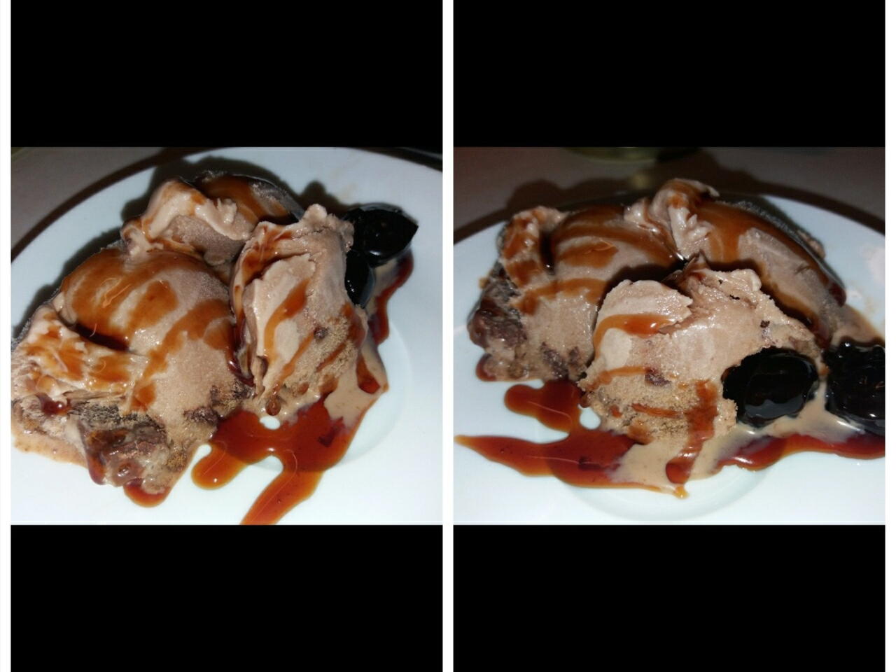 Αμέσως μετά χτυπάμε στο μίξερ την κρέμα γάλακτος προσθέτουμε το κρύο μείγμα σοκολάτας και ανακατεύουμε με ένα μαρίζ.Παγώνουμε το παγωτό για 6 ώρες και τέλος όταν σερβίρουμε βάζουμε(προαιρετικά) γλυκό του κουταλιού και κομμάτια από βύσσινο. Καλή επιτυχία!