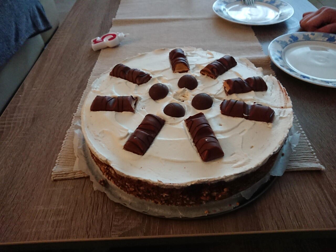 Smiksati šlag i staviti na tortu. Ukrasiti po želji.