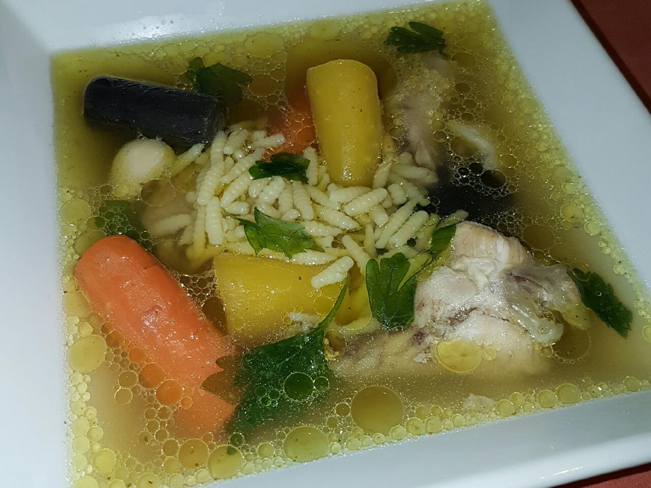 Szedje a húst, és a zöldséget tányérba, óvatosan adagolja hozzá a tiszta levest, majd adja hozzá a tésztát.