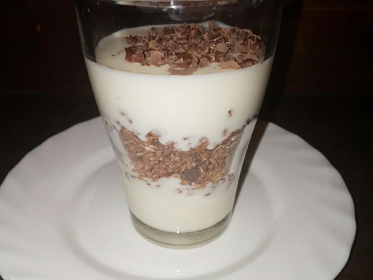 A joghurt tetejét szórja meg forgácsolt csokoládéval. Jó étvágyat!