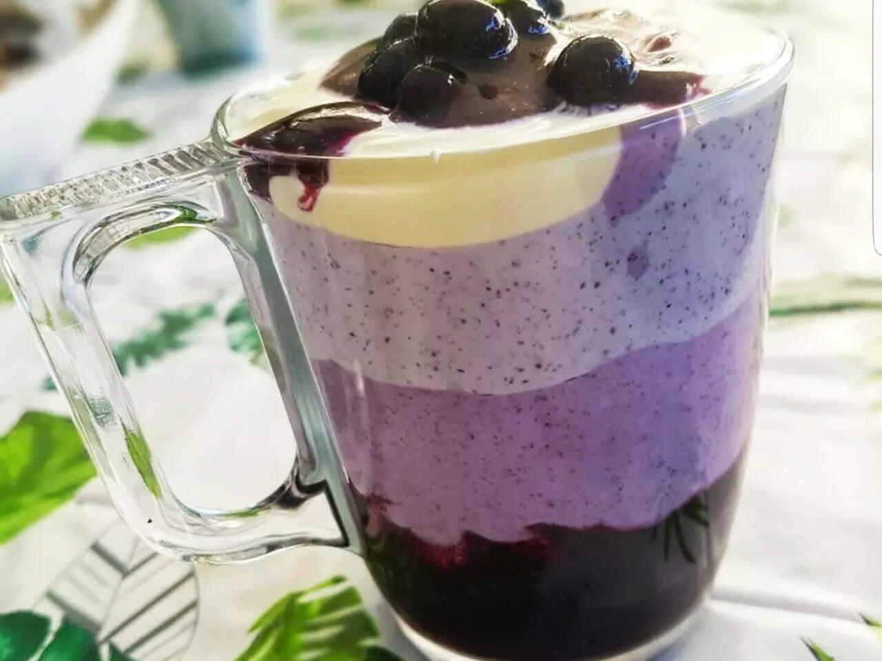 Három adagra osztjuk. Az egyikhez két evőkanál áfonyát keverünk. A másodikhoz egyet. A harmadikhoz pedig csak egy teáskanálnyit és így rétegezzük.