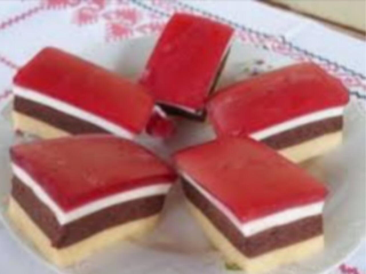 A 2 deci szörpöt felmelegitjük fel oldjuk benne a zselatint hadjuk ki hülni majd ráöntjük a többi tetejére és hütöbe rakjuk míg meg nem dermed ha már stabil lehet szeletelni