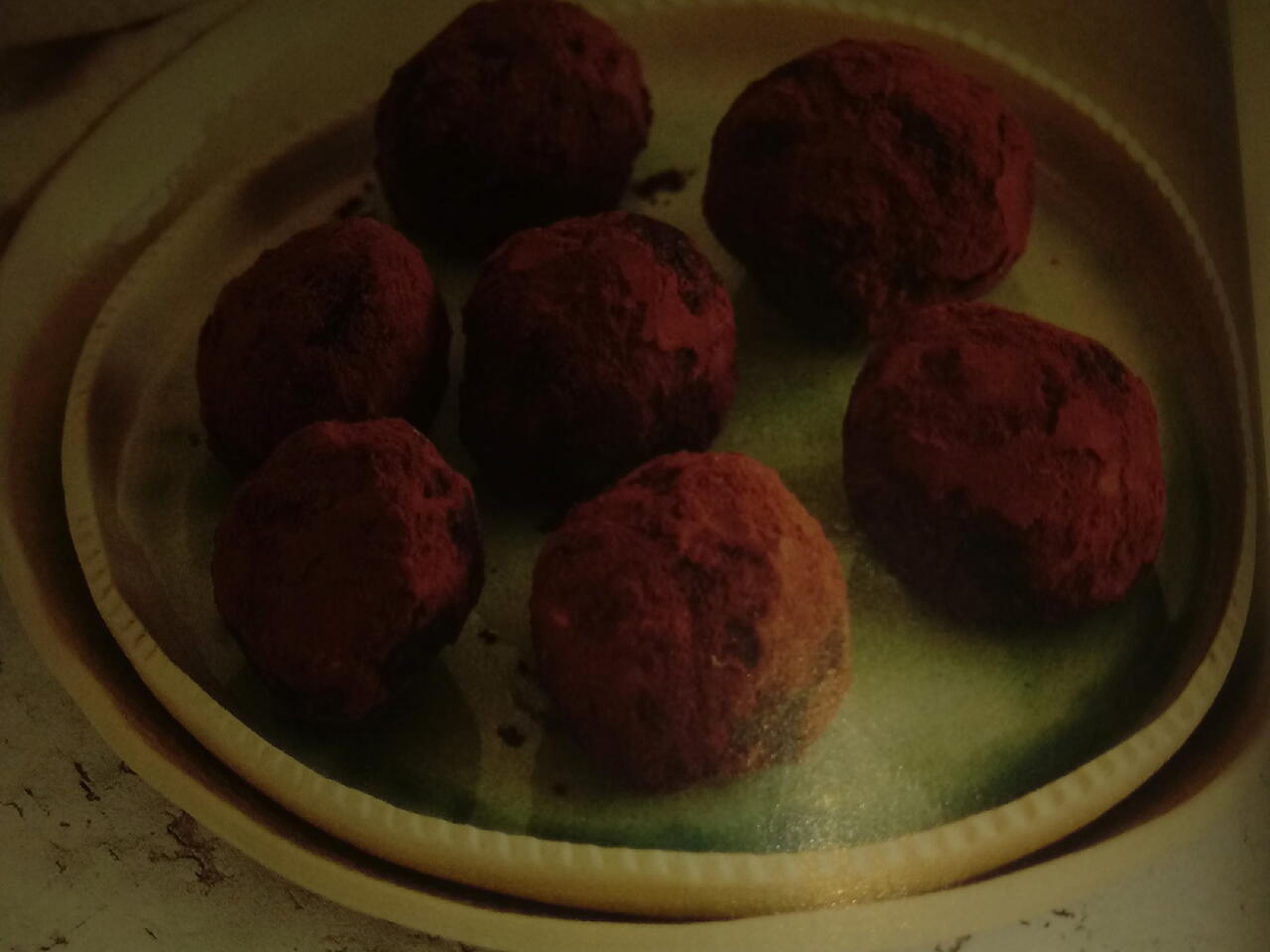 Golyókat formázunk a masszából, végül megforgatjuk őket a kakaóporban. Tálalásig hűtőben tartjuk.