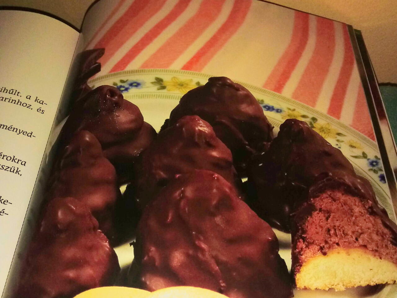 A csokoládét gőz fölött megolvasztjuk, simára keverjük az olajjal, és megmártjuk a csúcsokat egészen a piskótáig.