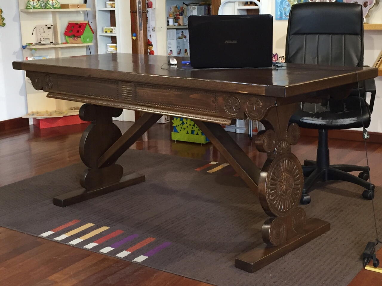 Tavolo da studio nuorese in massello di castagno intagliato a mano.