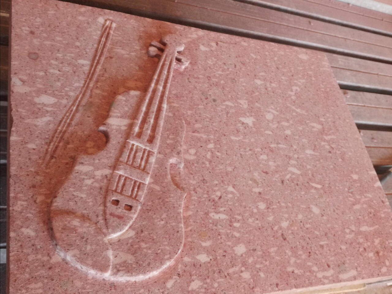 Organizzare una piastra di trachite rosa ,poi disegnare a matita la figura da scolpire e successivamente agire con scanalatura perimetrale.