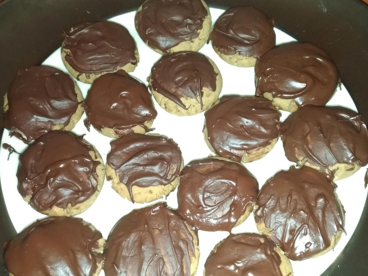 Sciogliere il cioccolato fondente a bagno maria utilizzando un pentolino. Una volta sfornati i biscotti con un cucchiaio versare la cioccolata su ogni biscotto oppure potete immergerli nella cioccolata e lasciarli raffreddare su una gratella con sotto un piatto. ( Conservare i biscotti in un contenitore chiuso a temperatura ambiente). Buon appetito!! πͺ