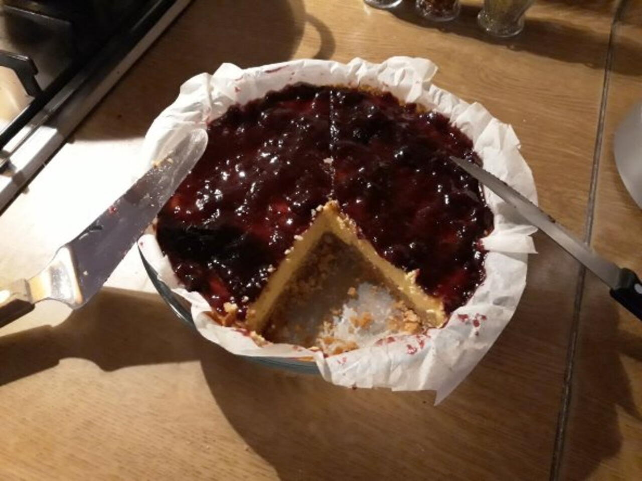 Amante dei dolci americani e in particolare della cheesecake. Base biscottosa con delizioso formaggio spalmabile ricoperta di glassa...di solito si usano ingredienti freschi e appena comprati...Ma se siamo di fretta e non abbiamo tempo di fare la spesa ma abbiamo tutto a portata di zampa in casa?...perché non approfittarne 😎