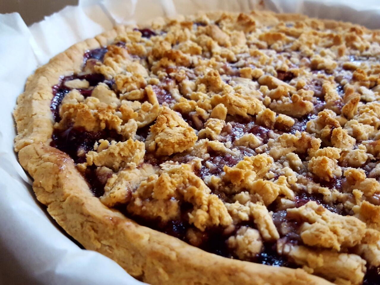 Unire le farine setacciandole e lo lievito.Aggiungere il latte , l'olio, il miele e la buccia di limone.Impastare, avvolgere nella pellicola e lasciare riposare 30 min in frigo. Stendere in una teglia di circa 24/26cm. Infornare per 40 min a 170Β°.