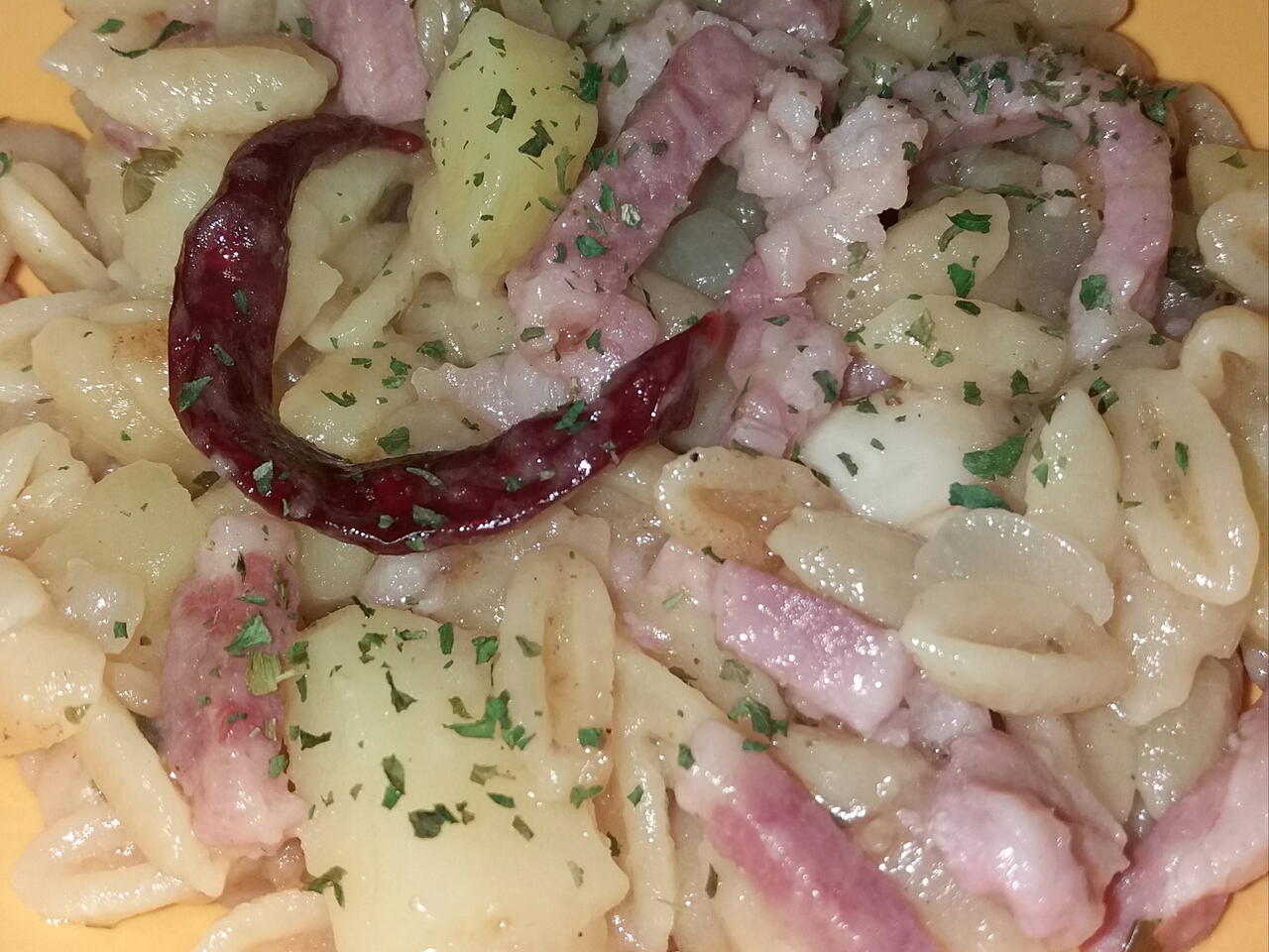 Pasta con ortaggi e pancetta