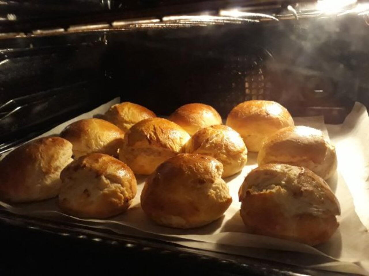 Spennellare con l'uovo sbattuto i 12 panini e poi metterli in forno. Cucinare i panini per almeno 20 minuti.