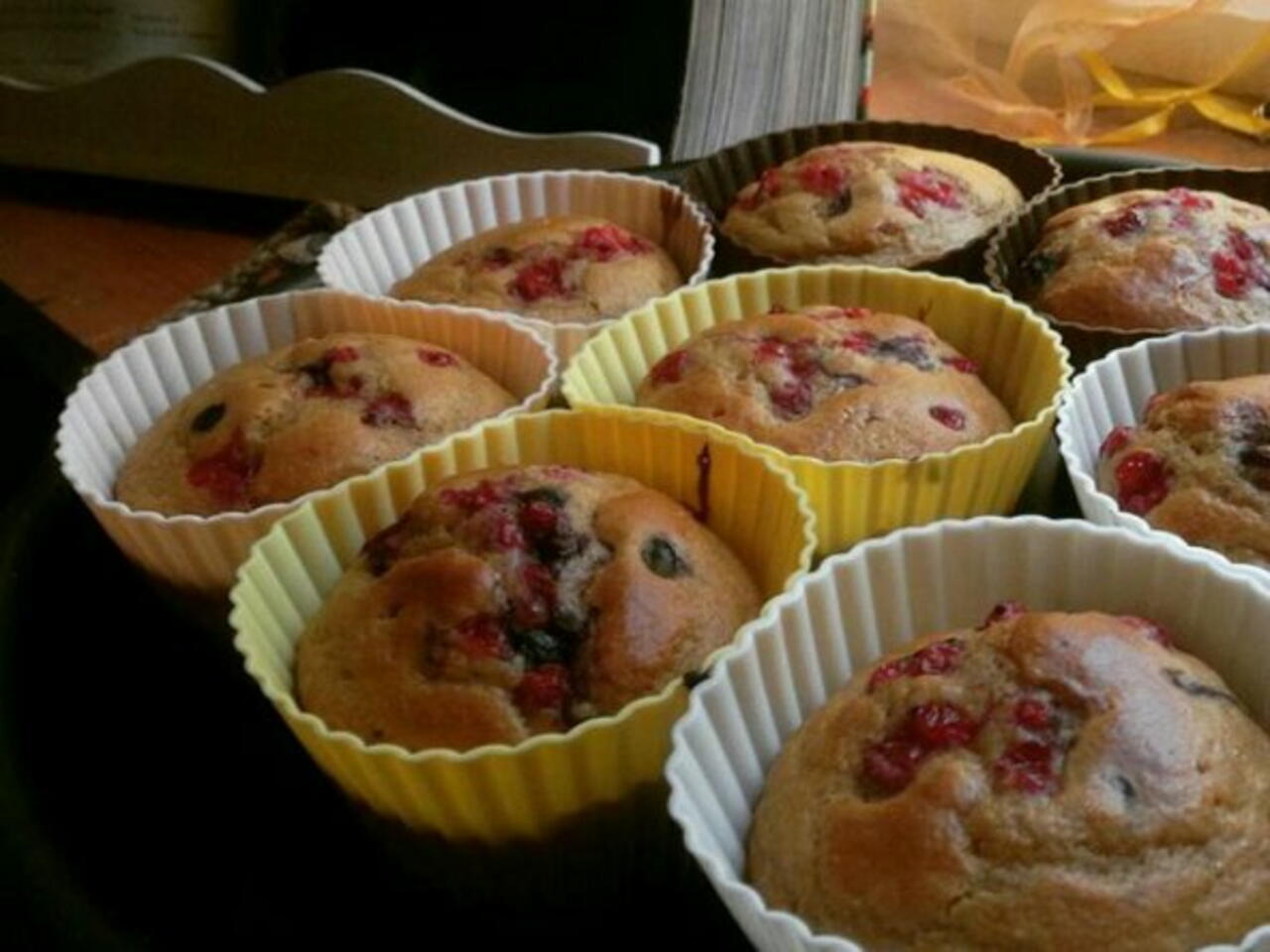In una ciotola metti tutti gli ingredienti liquidi ( latte, olio ) aggiungi lo zucchero e mescoli bene, dopo di ché aggiungi gli ingredienti secchi( farine, lievito) mescoli bene... aggiungi i frutti di bosco o anche le gocce di cioccolato se preferisci...inforni a 180 per circa 25/30 minuti.... e il gioco e fatto 😊