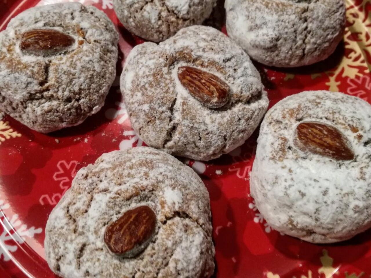 Far riposare il composto per almeno 2 ore, poi formare delle palline, schiacciarle al centro e farle cuocere in forno per 20 minuti a 180°. A metà cottura porre al centro dei biscotti una mandorla per guarnizione.