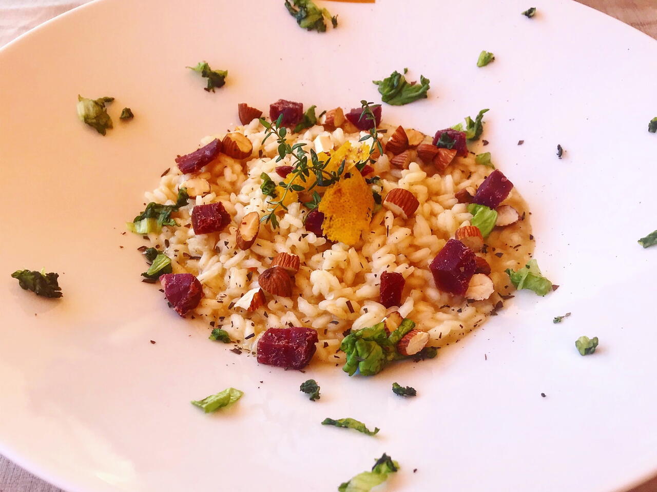 Risotto Con Bresaola, Insalata, Mandorle Tostate