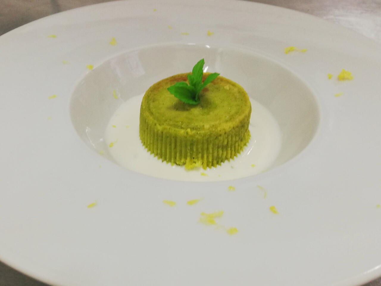 Sformare in un piatto a ciotola lo sformato di zucchine versare la crema di parmigiano grattugiate un po' di limone e servite
