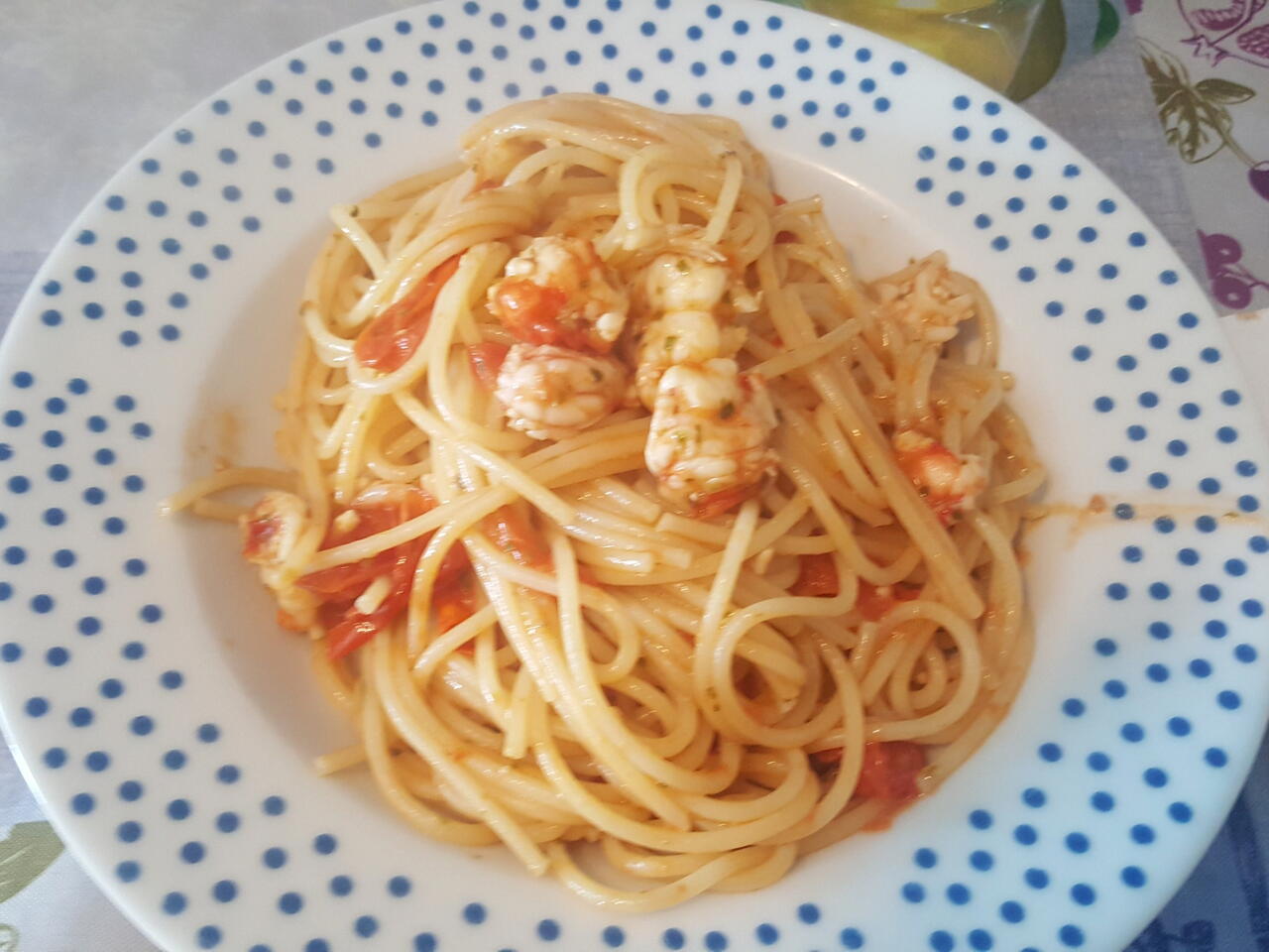 Spaghetti Gamberi Pesto e Pomodorini Datterini
