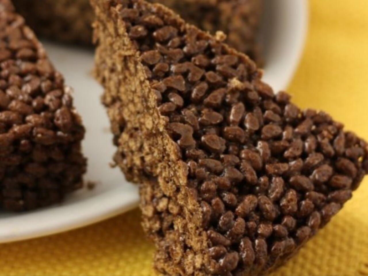Versare il composto in una tortiera antiaderente e compattare bene con l’aiuto di un batticarne in modo che il riso soffiato non si sgrani quando viene tagliato e mangiato.