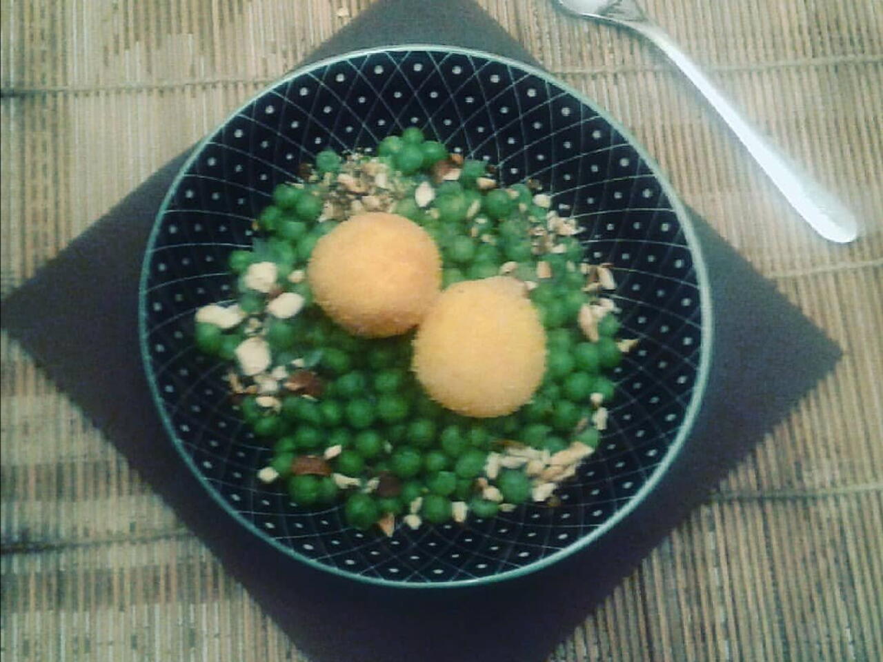 Tuorli Fritti Su un Letto di Piselli e Mandorle