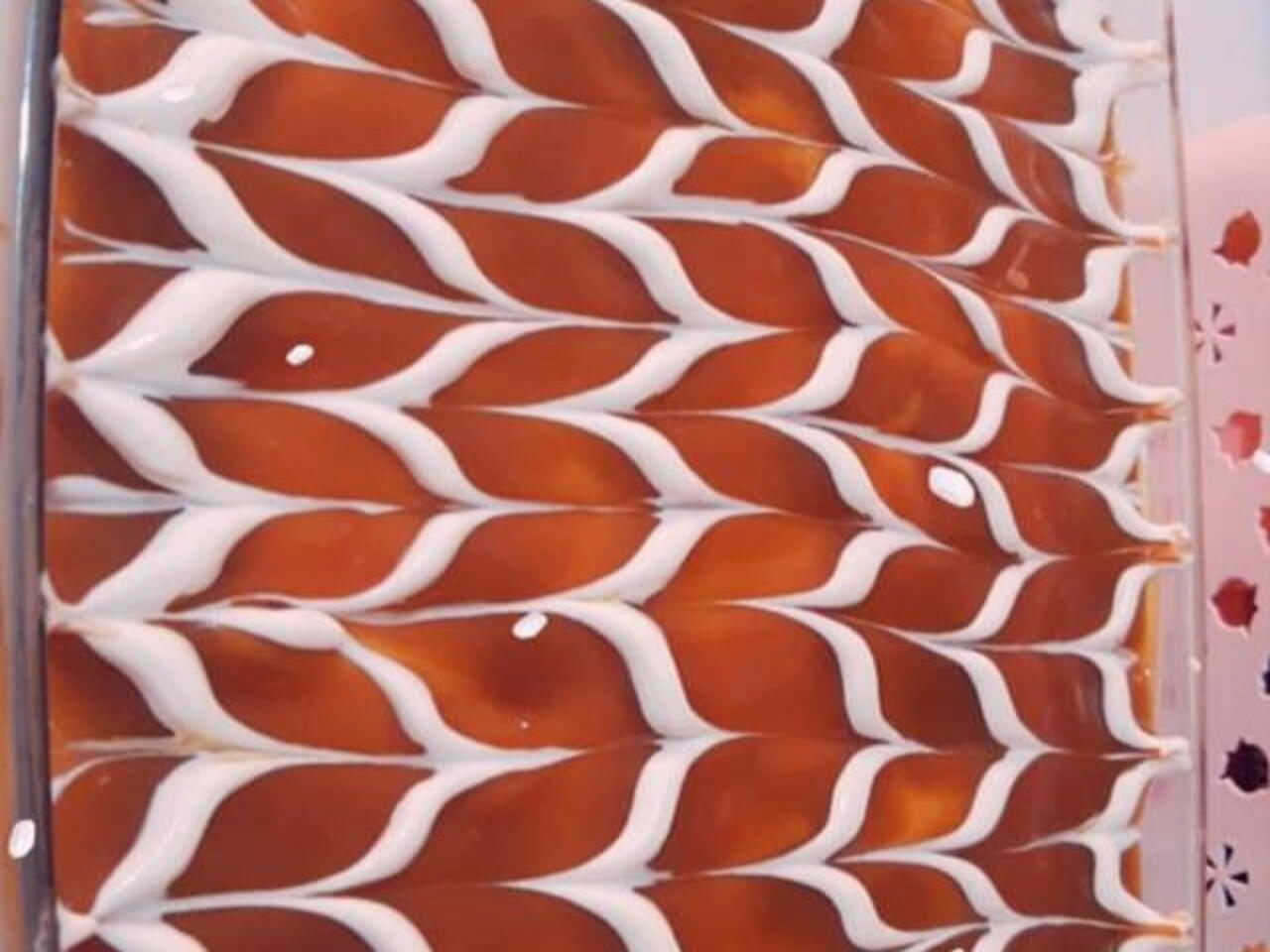 نعمل كيكه اسفنجيه وبعد ما تبرد بنشربها حليب ٢كوب مخلوطين بكوب كريما سائله وبعدين بنحط طبقه كريمه مخفوقه والطبقه الاخيره الكراميل وبنعمل على الكراميل خطوط بالكريما متل مو مبين بالصوره وصحتين