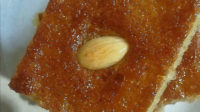 نخرجها ونقطعها ونزينها بالمكسرات المتوفرة لكن المتعارف علية هو الفستق السوداني