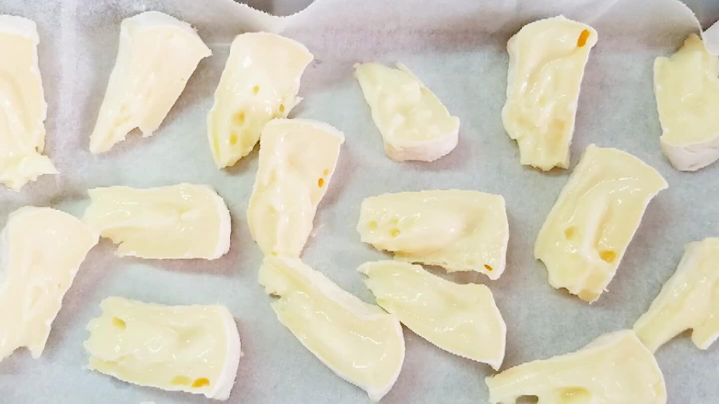 カマンベールチーズ1個を16等分にカットして醤油を付ける。