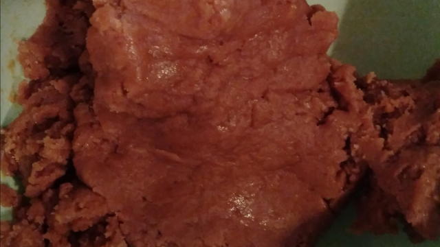 油を加えて混ぜる。その後、希望の粘度になるまで卵をいれる。べたべたしすぎる場合、小麦粉追加。(型抜きするなら多め、手で成型ならまとまるくらい)