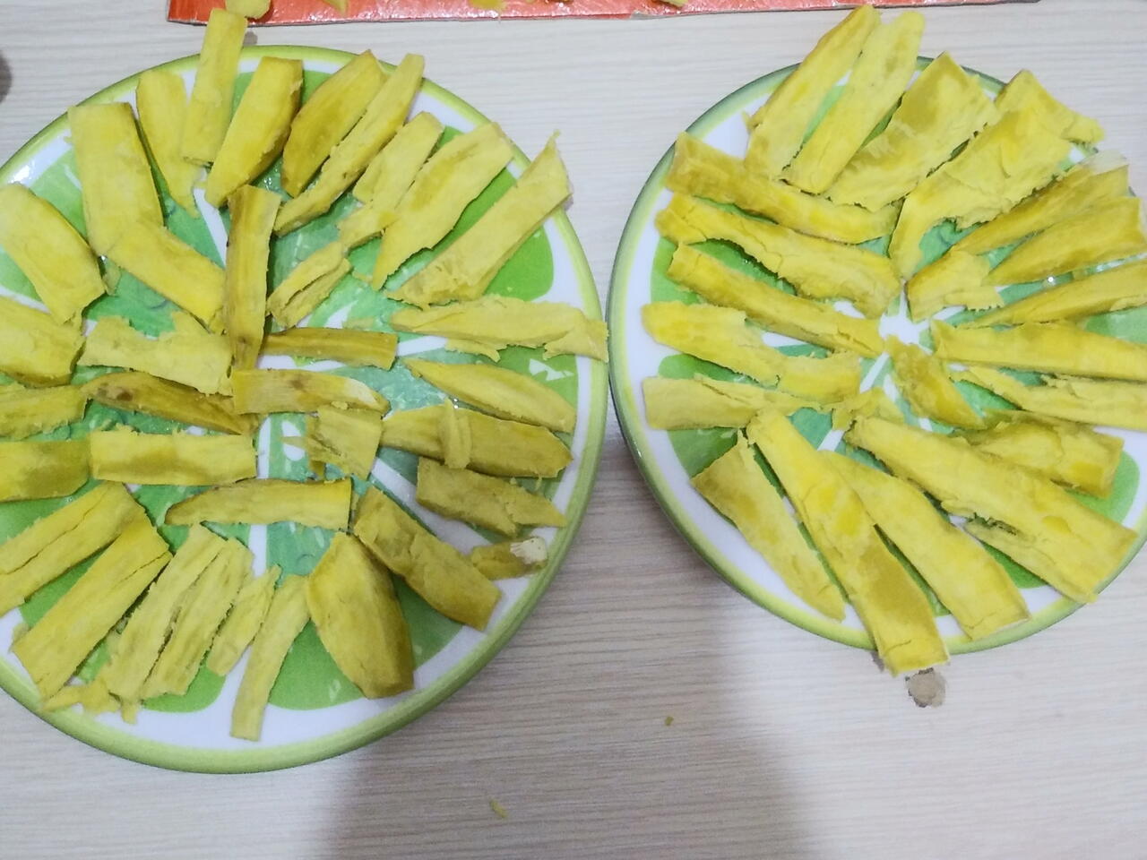 잘 쪄진 고구마를 원하는 크기로 잘라 2~3일간 말리면 완성