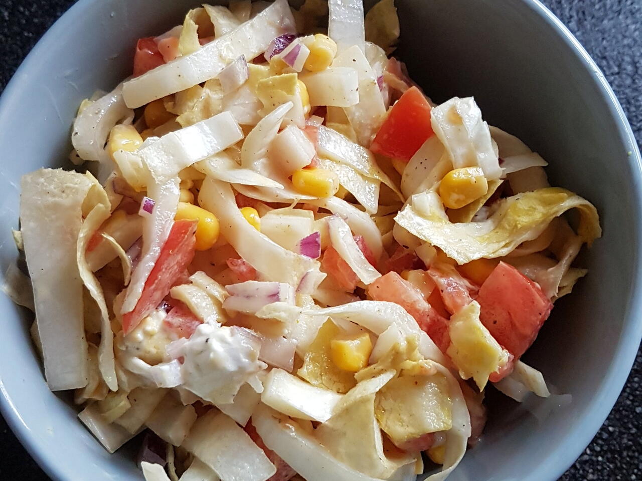 Lekkere frisse salade, zomers voor bij de barbecue maar ook heerlijk met gebakken of gekookte aardappelen.