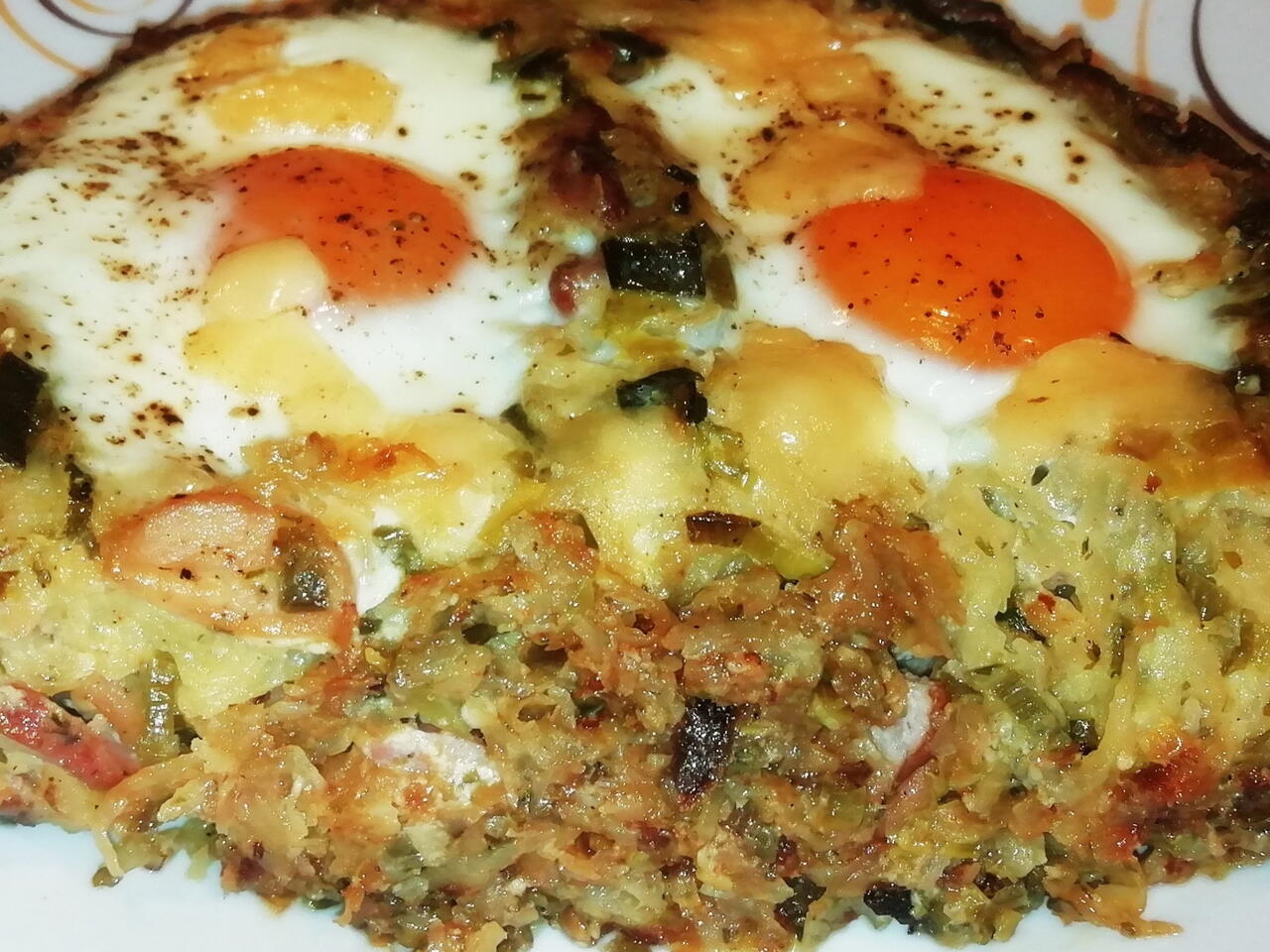 Kiedy jajko będzie wyglądało jak sadzone babka będzie gotowa☺️ Smacznego!