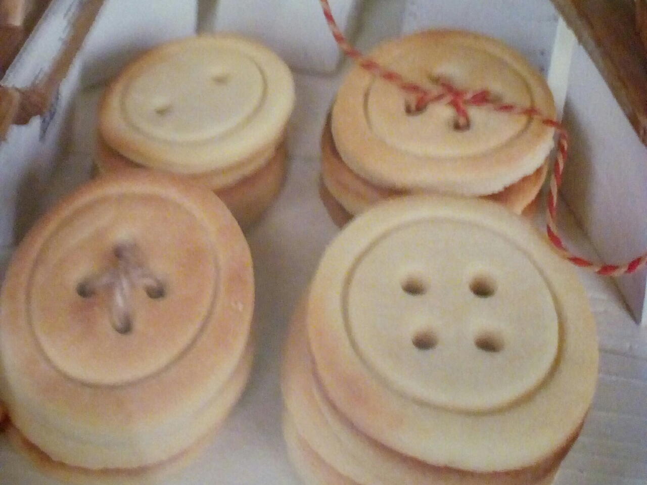Kiedy guziki upiekły się i ostygły, posypać je cukrem pudrem.