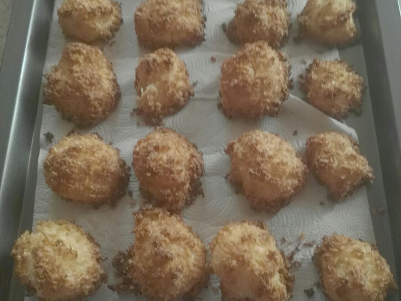 Na blachę wyłożona papierem do pieczenia kładę porcję masy (łyżką). Wstawiam do nagrzanego do 180 stopni piekarnika i piekę około 15-20 minut.