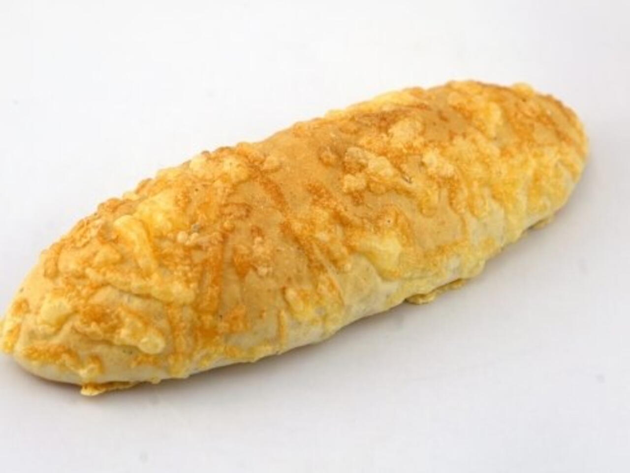 Z ciasta formujemy płaskie bagietki. Smarujemy jajkiem i nakładamy starty żółty ser. Blachę natluszczyc.