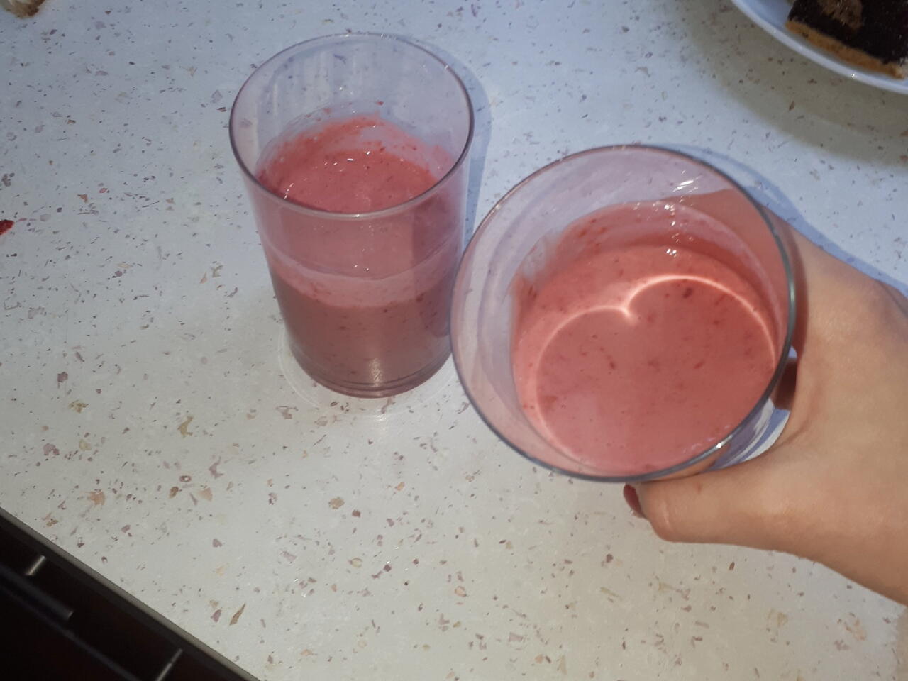Maliny rozmrażamy jeśli są mrożne (ja rozmroziłam w mikrofali) i wrzucamy do blendera, razem z obranym i pokrojonym bananem i mlekiem.