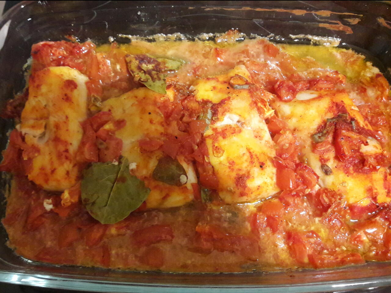 Coloca se os lombos de peixe numa travessa. Comece por cortar uma cebola em cubos e o tomate. Coloquem em cima dos lombos a cebola e o tomate, tempere com alho azeite pimenta louro e massa de pimentao.