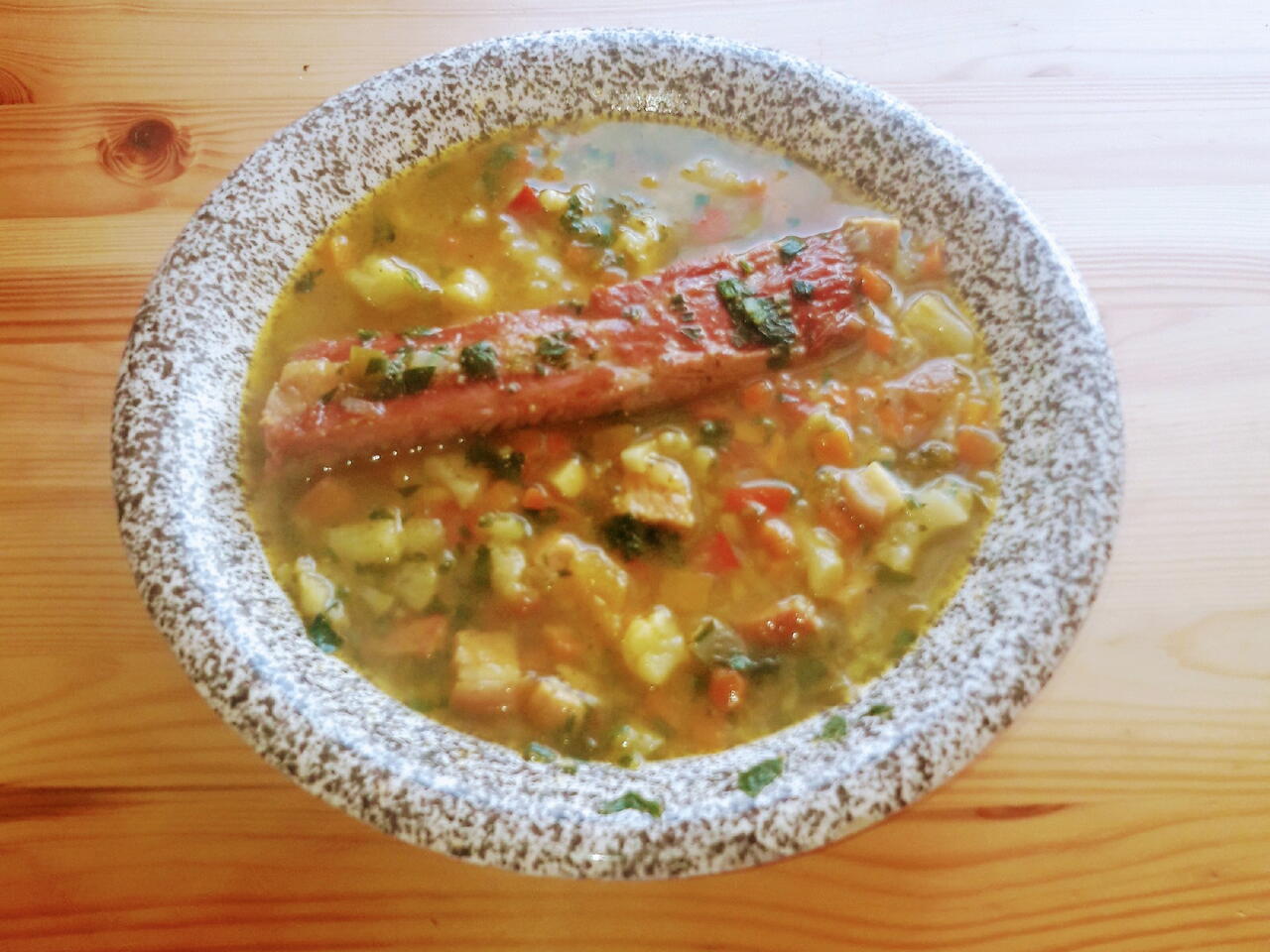 6. Mai lăsați vreo 10 minute la foc iar cand sunt fiert cartofi,potriviți de sare ,piper adăuga patrunjelul tocat mărunt