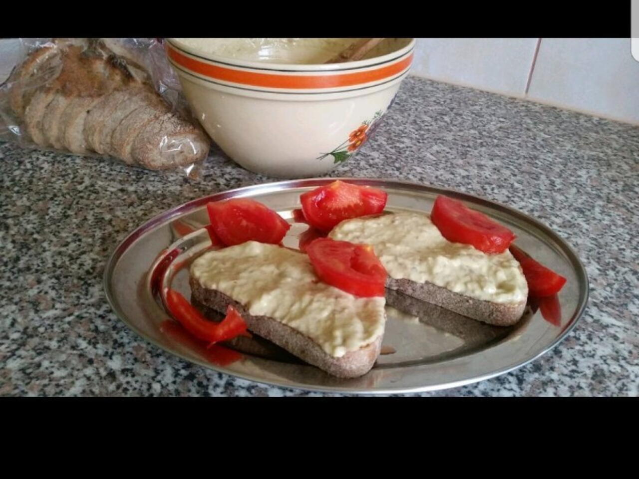 Se toaca vinetele si se amesteca cu ceapa taiata marunt, zeama de lamaie, mustarul, sarea dupa gust si uleiul turnat încet. Se amesteca pana se încorporează ingredientele.