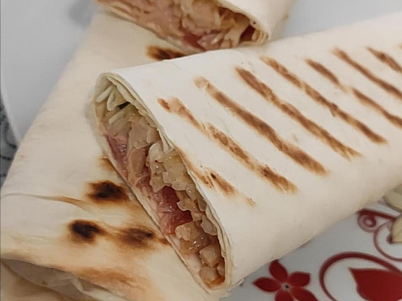 Pe fiecare bucată de lipie punem mai întâi pe lateral pășind de la margini circa 2/3 centimetri varza dacă doriți morcov apoi carnea, roșiile castraveți murați și opțional ciapă iar la final amestecul de khetciup și maioneză.