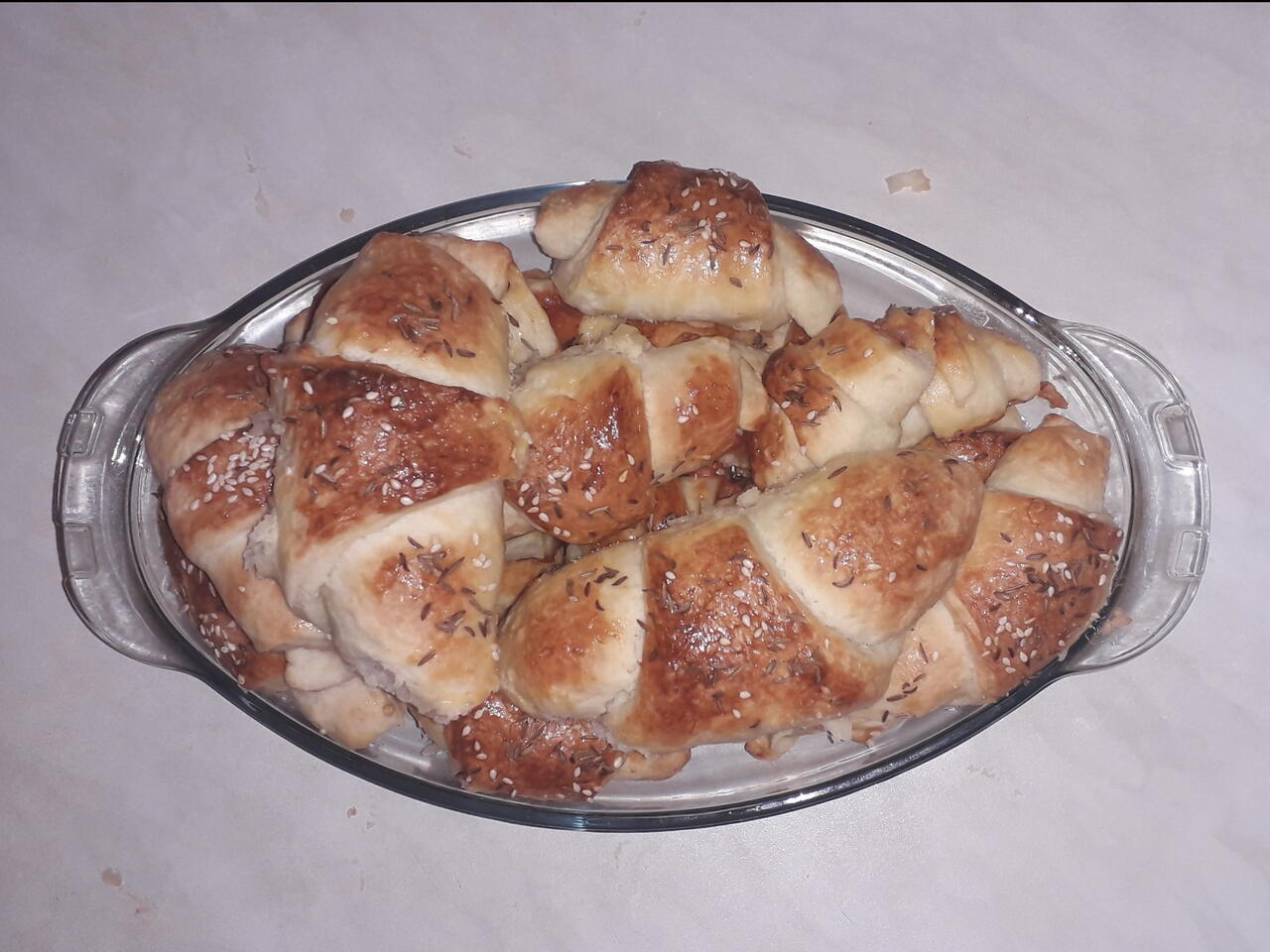 Poslagati u tepsiju. Umutiti jaje pa premazati kiflice i posuti po želji nekim semenkama il morskom solju. Uključiti rernu da se zagreje na 200 stepeni. Peći dok ne porumene po vašem ukusu. Prijatno! ❤