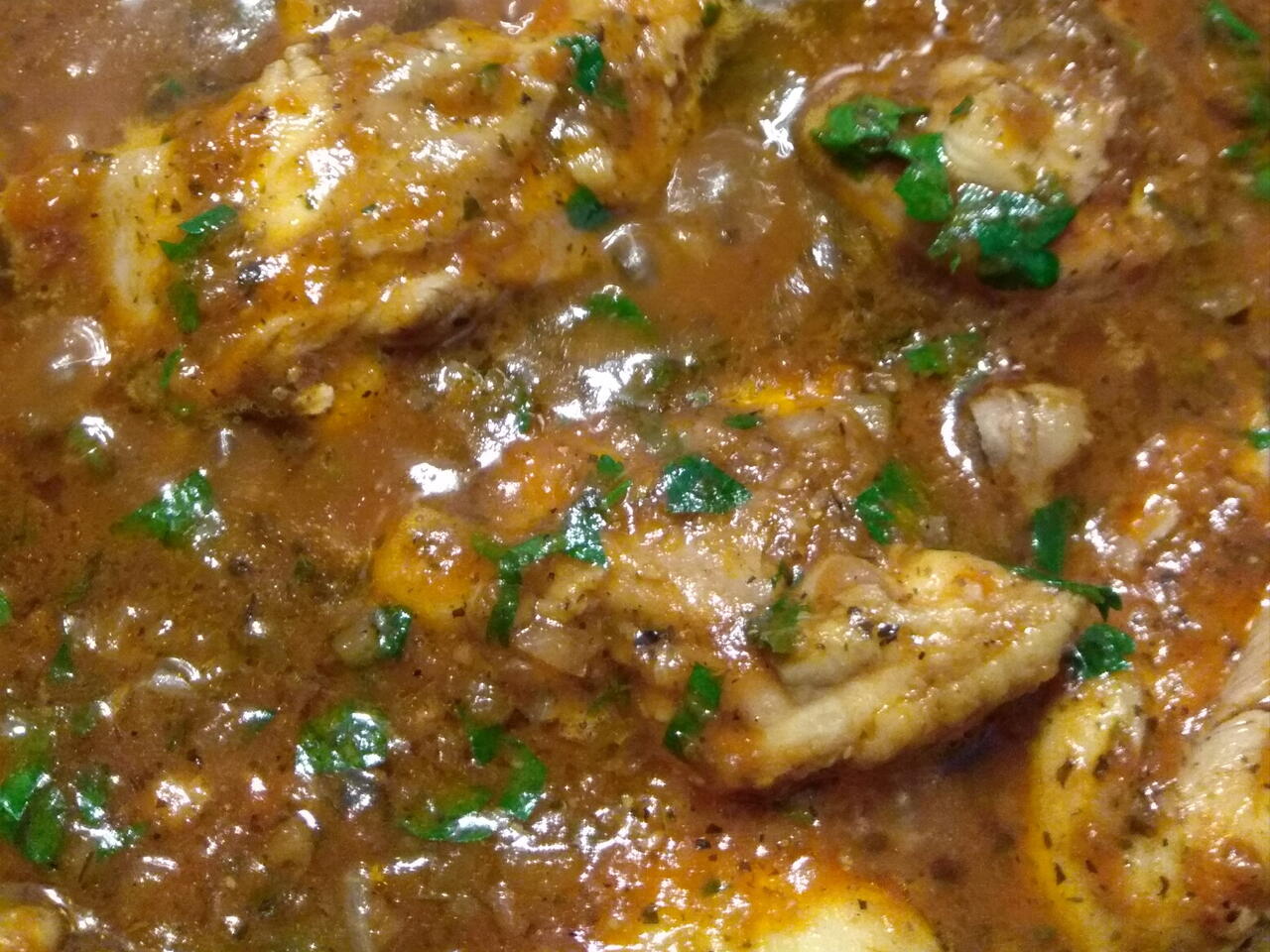 Затем снимите крышку и тушите еще 10 минут чтобы жидкость немного выпарилась. Выключите огонь и добавьте петрушку. Подавать можно с рисом или картофелем