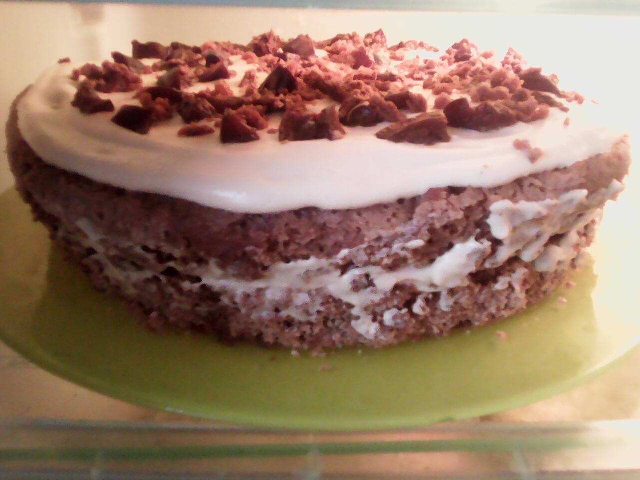 После создания крема налейте его на верхние части коржа и по желанию можете торт украсить чем угодно (можете крошками коржа)! Поставьте торт в холодильник на день.