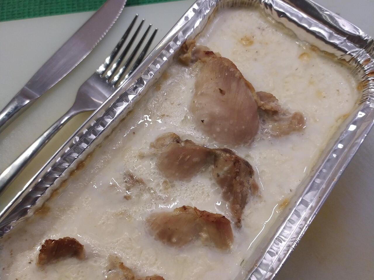 У меня на видео жидковато получилось. Потому лучше не в бульон сыр добавлять, как на видео, а малыми порциями выливать бульон в сыр и размешивать. Соус должен быть как жидкая смета. Залить соусом курицу и убрать в духовку на 20 мин при 200°С. Количество бульона и сырков зависит от количества курицы.