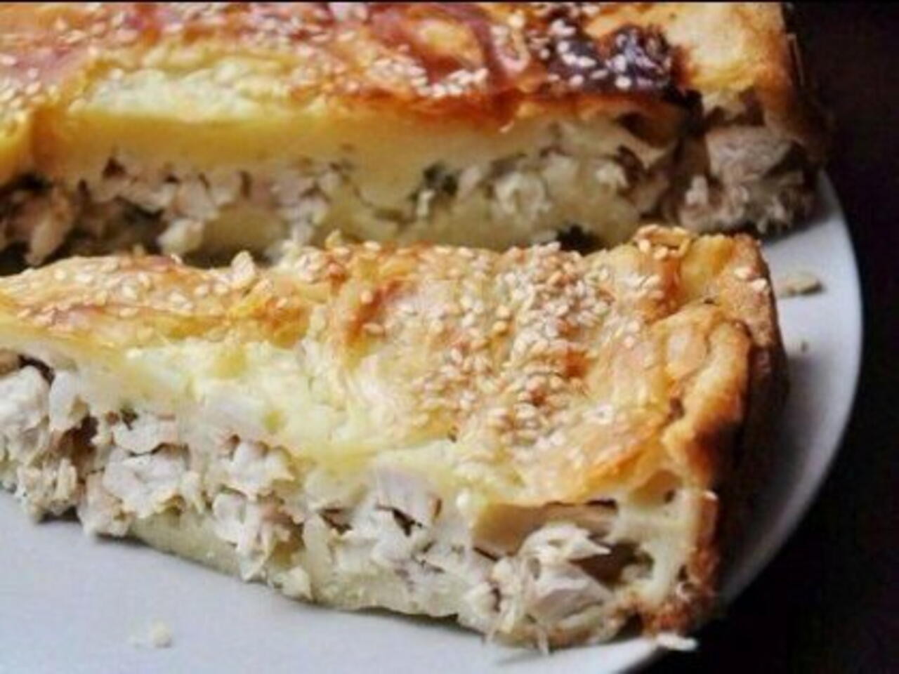 Выпекаем пирог в разогретой до 200 градусов духовке около 35-40 минут (до золотистой корочки).