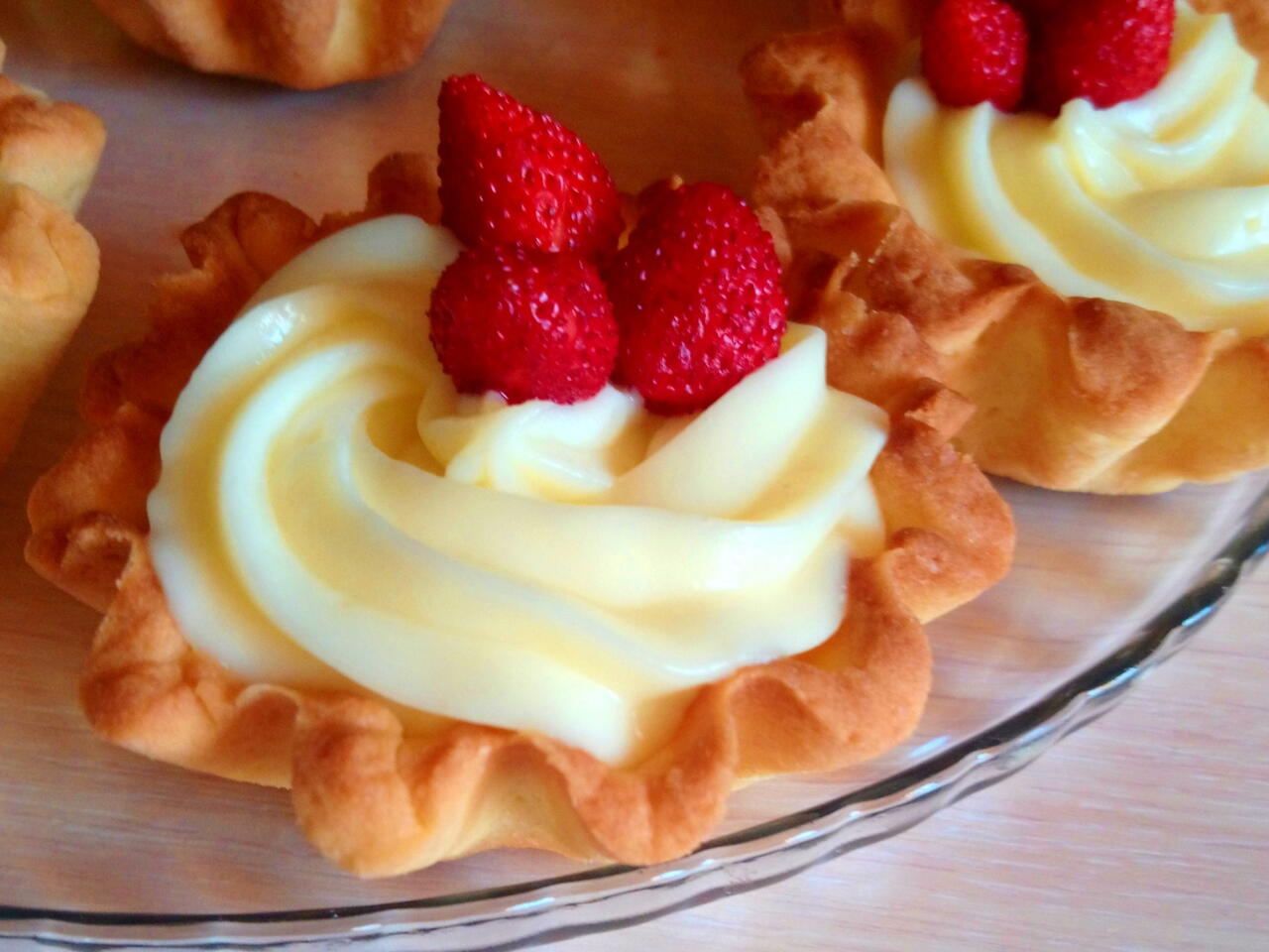 Песочное рассыпчатое тесто и нежный крем с лёгкой кислинкой. Очень нежное, лёгкое и очаровательное пирожное. Рекомендую попробовать. Кстати, основу-Корзиночки использую и для других вариантов пирожных: лимонный курд или ганаш с карамелью и орехами и множество других вариантов. А сейчас даю самый лёгкий в приготовлении вариант рецепта.