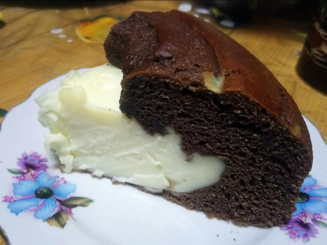 В оригинале автор этого рецепта использует форму 22 см, но пирог очень хорошо поднимается в духовке, поэтому 24-26 см оптимальный диаметр (у меня 24). Что бы пирог хорошо держал форму, остужайте ещё несколько часов, у меня пирог стоял ночь в холодильнике. Крем плотный, не растекается.