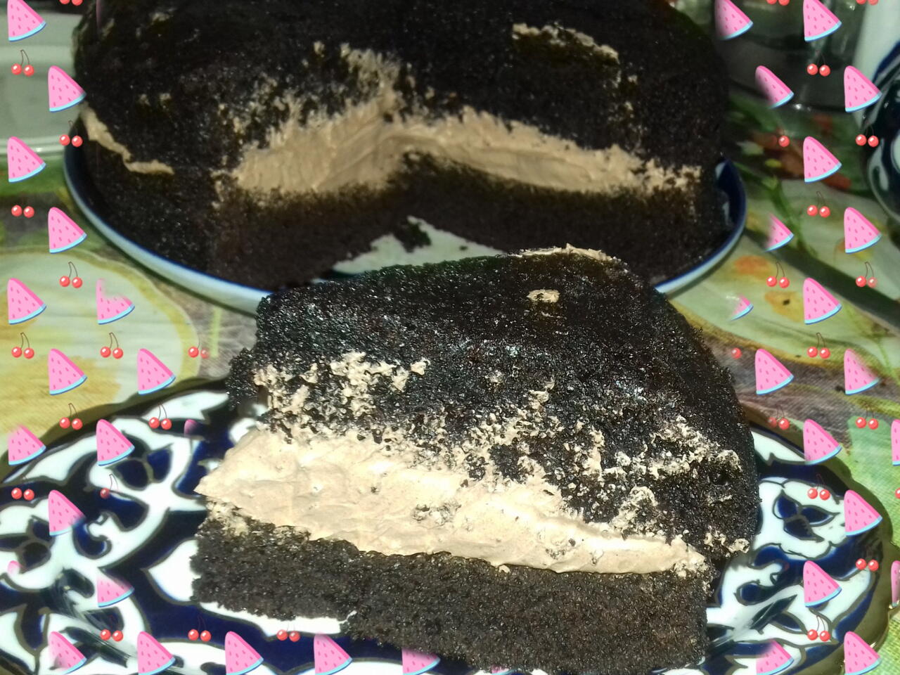 Я большой любитель шоколадных тортов, поэтому на фото, в качестве крема я использовала крем из взбитых сливок с добавлением шоколада.