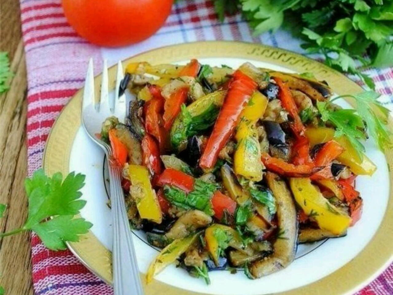 Баклажаны нарезать небольшими кусочками. Добавить специи , перемешать и оставить на 20 минут.