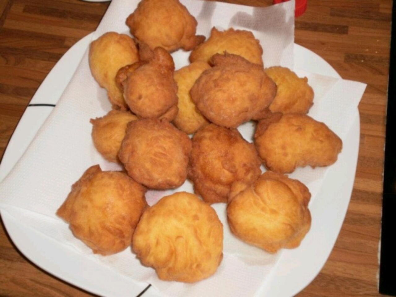 Všetko zmiešame spolu a necháme 5 minút odstáť. Potom si zoberieme polievkovú lyžicu a cesto po jednej lyžici dáme do horúceho oleja guľky. Nemusíme obracať guľky sa obrátia samé. Ak už sú upečené vyberieme a hneď obalíme v práškovou a vanilkovým cukru. Môžme podávať aj s ovocným džemom. Dobrú chuť prajem.