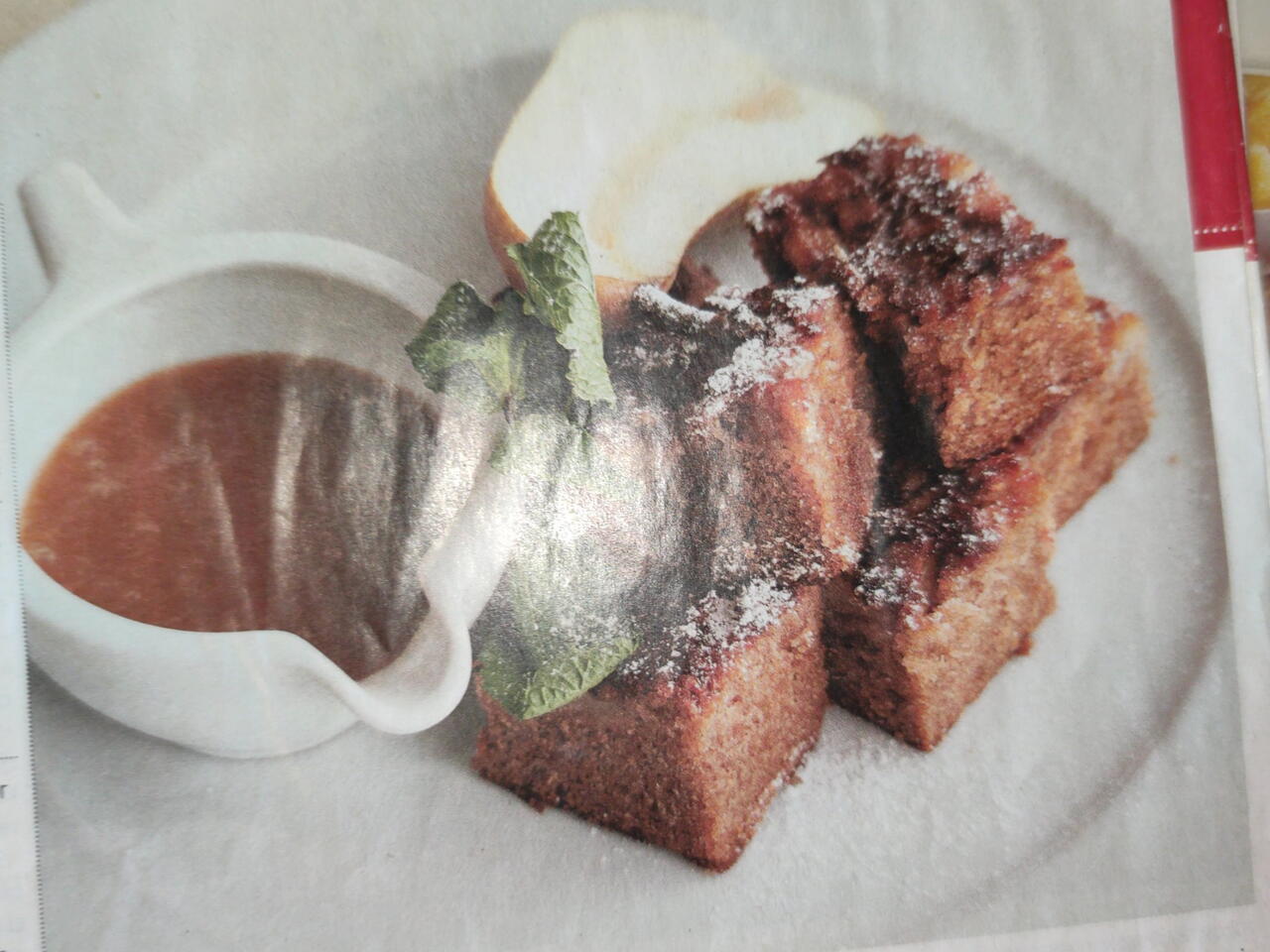 Do hotovej zmesi primiešame na kocky nakrájanú hrušku a vylejeme do vymastenej a múkou vysypanej formy. Pečieme 30 minút pri 180 °C.